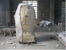 As the sculpture cools the ceramic shell begins to pop away from the bronze. This shell will be completely broken away,
