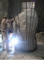Then a refractory sand applied on it been called stuccoing.