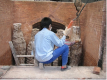 The shells are then cured in a kiln so they will withstand the temperature of the molten bronze being poured into them.