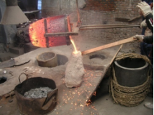 Bronze ingots are melted to a temperature of approximately 2000°F and poured into the cured ceramic shells.