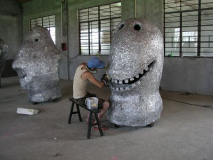 First the artist creates an original sculpture out of any number of media, including plaster, clay, FRP, wood or stone. This image is coated with a silicone rubber