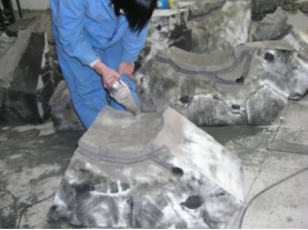 There are two main types of sand used for molding.Green sand and No bake resin sand.What we used to making mold is No bake resin sand,which also called self-hardening resin sand.After the formulation of sand mixture and the mold has been grounded & consolidated,pattern makers will put the sand into the cavity of shape,then they separate it when the sand become solidification.Normally,the pattern will be divided into not only two pieces but several pieces,which termed loose pieces.The upper part of pattern called cope,the bottom called drag.Pattern makers will also make aparting line toidentify cope and drag.