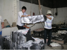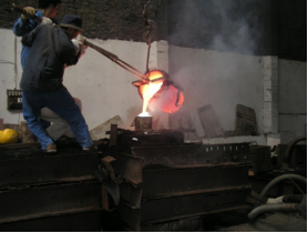 This is probably the most complicated process of sand casting, which needs consider lots of elements such like pouring time, pouring temperature and consolidation. And after the new pattern has grounded, workers will using steel, wood or rope to seal the pattern to avoid the pattern will expand and "leak fire". When the metal has been melted, it must be measure the temperature first, if it's not suitable for pouring, then must forbidden to do it.And also another step is remove the slag from the liquid. After everything is under control, then it can be pouring. Normally, the molten bronze's temperature can reach more than 1000 centigrade.